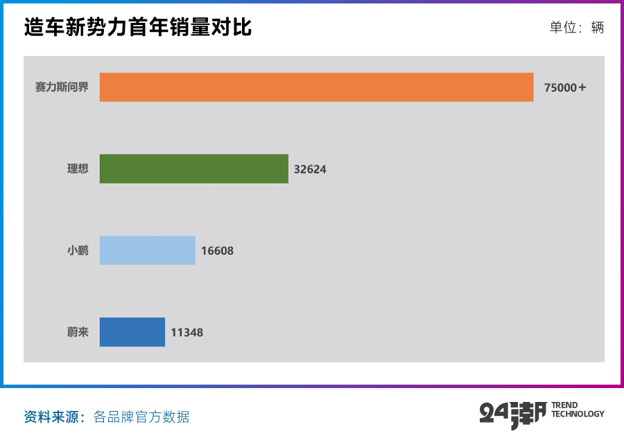 要知道蔚来2018年开启交付当年销量仅为11348辆,2019年小鹏首年成绩为16608辆,理想第一年的交付也仅有32624辆;问界系列首年销量已超过 “蔚小理” 总和,堪称成长最快的新能源汽车品牌。