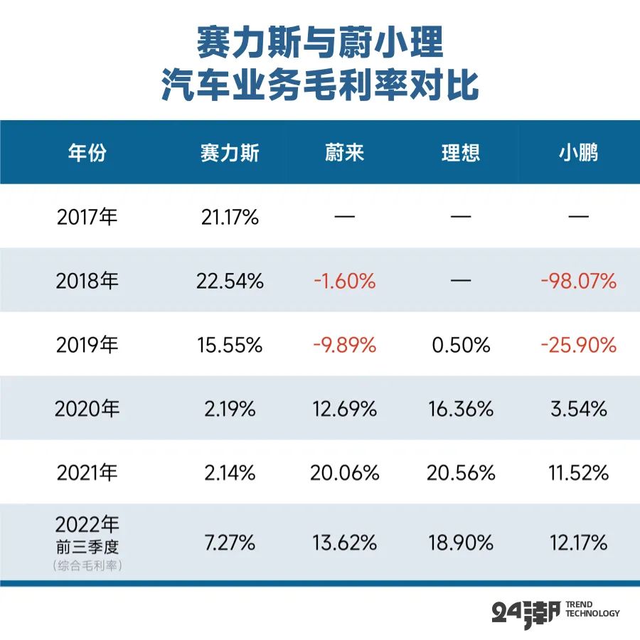 毕竟数据不会说谎,赛力斯的汽车业务毛利率确实已远远落后于竞争对手,详见下表: