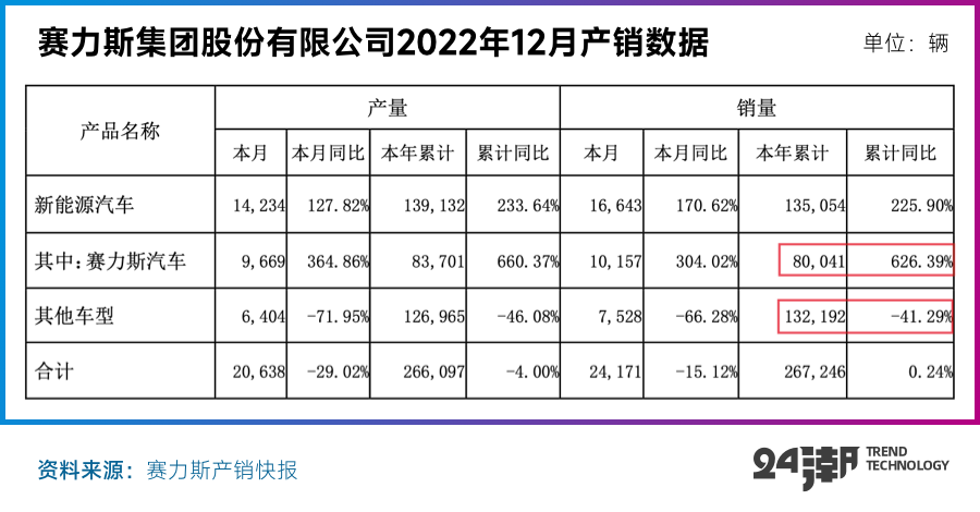 据最新披露的年度产销快报,2022年其 “赛力斯汽车”(含问界系列品牌)产量与销量分别为83701辆和80041辆,分别同比增长660.37%、626.39%,是公司成长最快的品牌,没有之一。