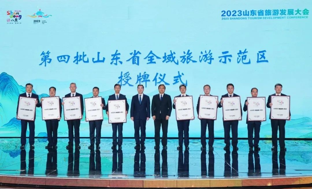 3月26日,2023山东省旅游发展大会在青岛开幕。现场举行“第四批山东省全域旅游示范区授牌仪式”。省委常委、秘书长张海波,副省长、省政府秘书长宋军继为“第四批山东省全域旅游示范区”授牌。