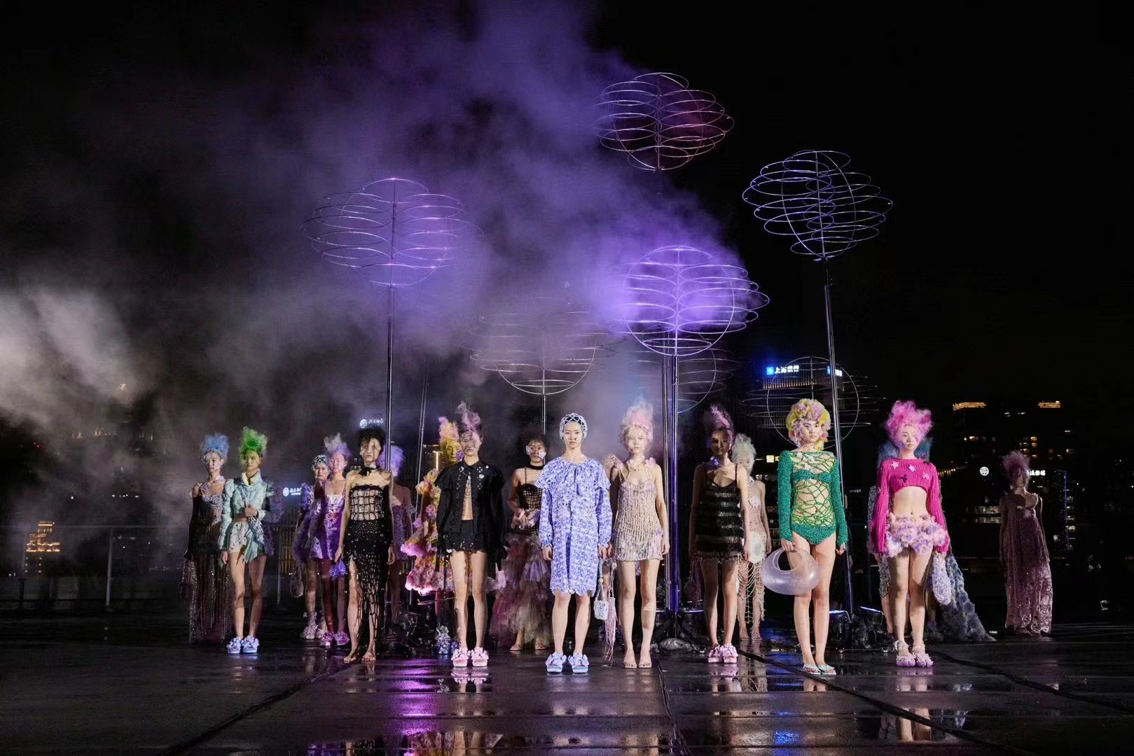 在夜幕下如梦似幻的水雾中,SUSAN FANG再次营造了一场五彩斑斓的梦。这也是该品牌首次推出童装系列。