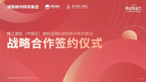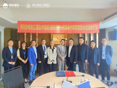 此次缤跃战略签约仪式在锦江酒店(中国区)上海总部成功举行。会上,缤跃酒店与湖南郴州辉邦集团签署战略投资合作协议,双方就缤跃酒店·湖南郴州项目建设运营等事宜进行座谈交流,共同携手为品牌高质量发展迈向了新的战略高度。