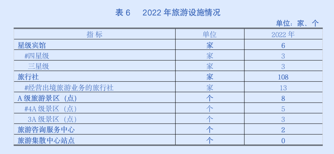 全年游客接待人次合计387.81万人次,营业总收入11.99亿元。其中108家旅行社接待游客6.26万人次,营业收入3.35亿元;53家主要旅游饭店接待游客92.92万人次,营业收入5.57亿元;21家旅游景区(点)接待游客288.63万人次,营业收入3.07亿元。区内全年共举办旅游活动101场次,游客线上点击超188万人次,线下参与近83万人次。