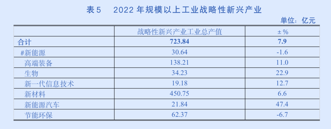 全年规模以上工业战略性新兴产业完成总产值723.84亿元,增长7.9%,战略性新兴产业的产值占全区规模以上工业总产值的比重为27.5%,与上年同期相比,比重提升1.2个百分点。
