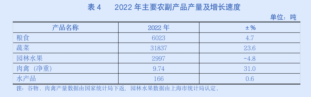 全年粮食总产量6023吨,增长4.7%;蔬菜上市量31837吨,增长23.6%;园林水果产量2997吨,下降4.8%;肉禽产量9.74吨,增长31.0%;水产品产量166吨,增长0.6%。