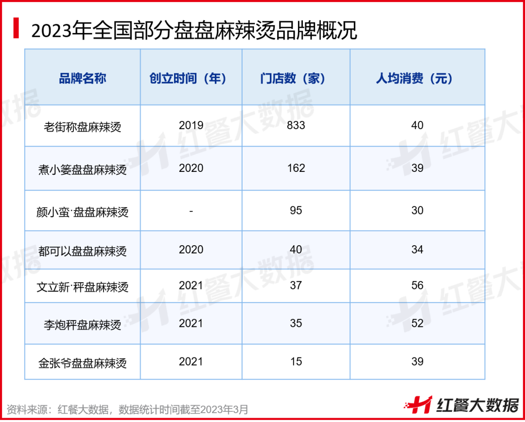 近年来,以麻辣、干拌、盘盘装为特色的川式麻辣烫异军突起。从2021年下半年至今,全国多地涌现出各种“盘盘麻辣烫”品牌,代表品牌的门店数快速增长,受到较大关注。比如老街称盘麻辣烫2021-2022年快速拓店,2021年成立于成都的辣盘盘麻辣烫于2022年3月完成了千万元级别的A轮融资。