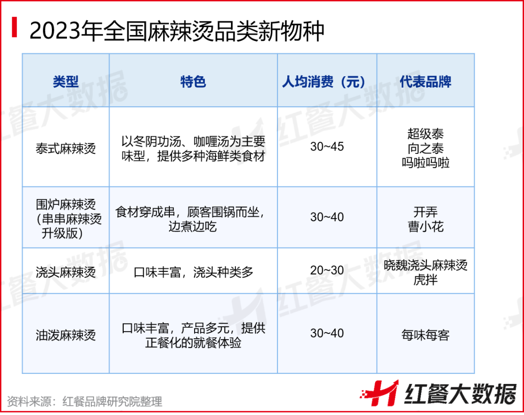 除了川式麻麻烫之外,一些麻辣烫的变种也逐步冒头,比如泰式麻辣烫、围炉麻辣烫、浇头麻辣烫等。