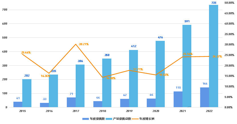 2015—2022年国产可重复使用内窥镜产品获批情况