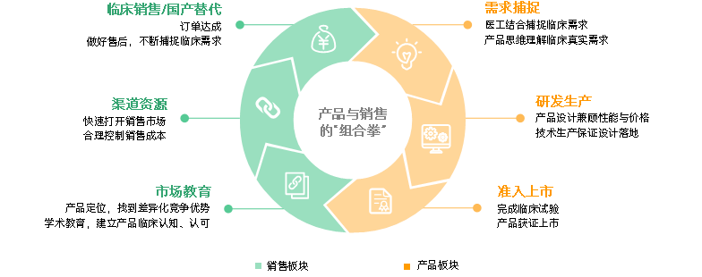 近年来,企业开始建立专业市场团队,力争做好产品定位及学术教育,助力最终的销售达成。此外,售后服务也得到更多重视,除了履行企业任务在临床树立良好形象,更重要的是这是一个捕捉临床需求的好机会,为产品研发设计提供宝贵的真实临床需求指引。