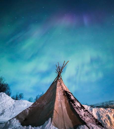 燃起营火,支起萨米人特有的帐篷,然后等待极光降临。