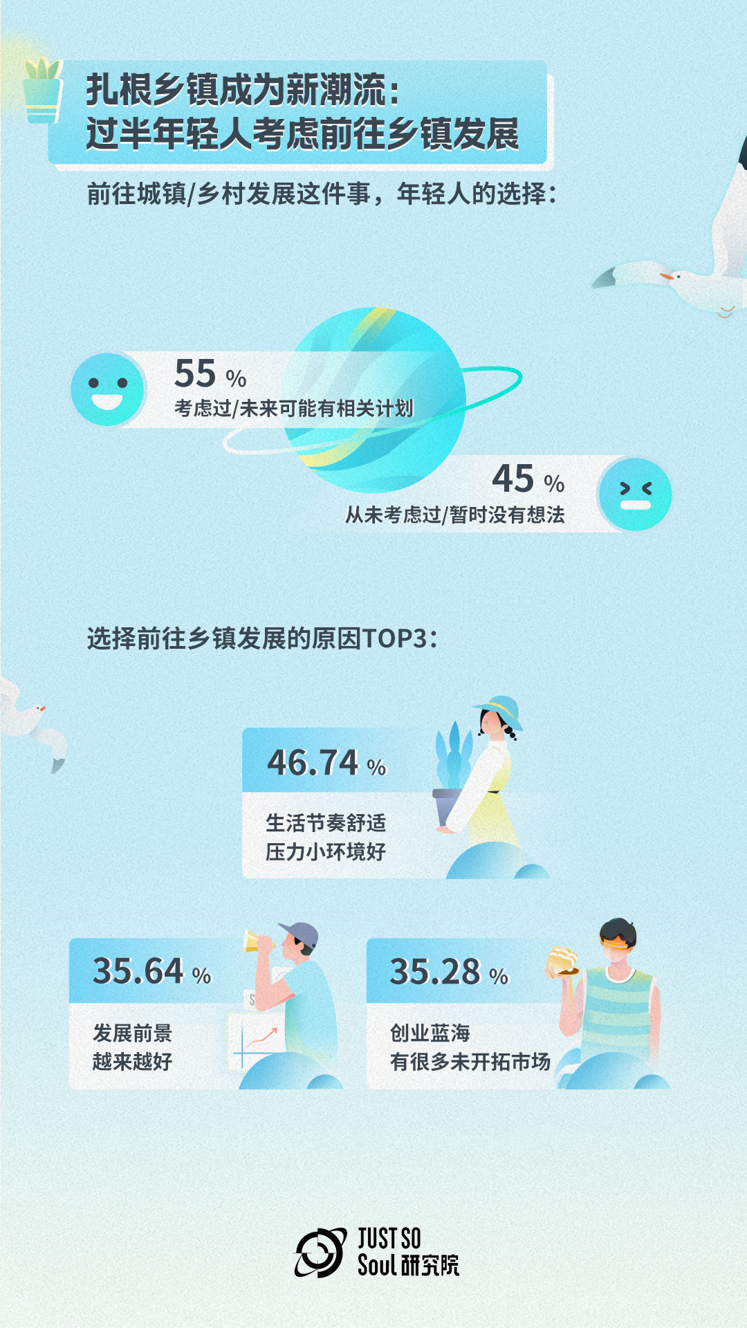 过半年轻人考虑前往乡镇发展,2成年轻人向往成为“新农人”