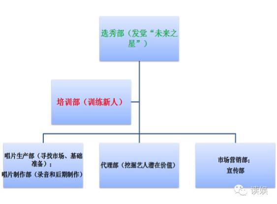 AKB48虽也有各种派生组合等类品牌延伸,但本质上跟韩娱非常不同,韩国经纪公司的套路则更多是学习日本Johnny's事务所的系统。让我们看看韩国最具代表性的S.M.公司的部门设置: