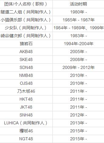 秋元康1981年以歌曲作词者身份正式出道,是日本著名的编剧与作词家,此外还从事导演、漫画原作、电视节目等工作,亦有担任京都造形艺术大学副校长一职。这都不算什么,真正要说他的流弊之处,可能就是造星,造组合了。下面来看看的造团能力吧: