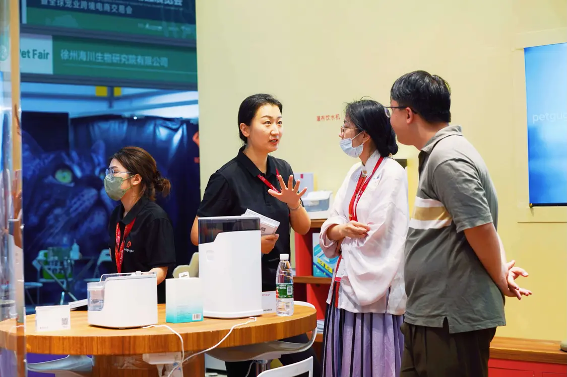展会期间,petgugu展台吸引了大批观众,他们对petgugu的宠物智能产品给予了高度认可和赞赏。一位养了两只猫的观众李小姐说:“petgugu的宠物智能喂食器和瀑布饮水机已经给家里猫咪用上了,可以让我在外出时也能放心给猫咪提供科学合理的饮食,而且设计也很美观适合现代家居风格,这次来展会就是想体验下petgugu其他产品。”