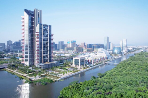浙江宁波宏泰广场,位于宁波东部新城CBD门户位置,由国际知名的英国Benoy贝诺建筑设计事务所担纲设计,涵盖五星级酒店、艺术中心、购物中心、个性生活村等业态,是宁波江东区域的标志性建筑,中西结合、充满艺术性的建筑群造就国际化的生态生活广场。