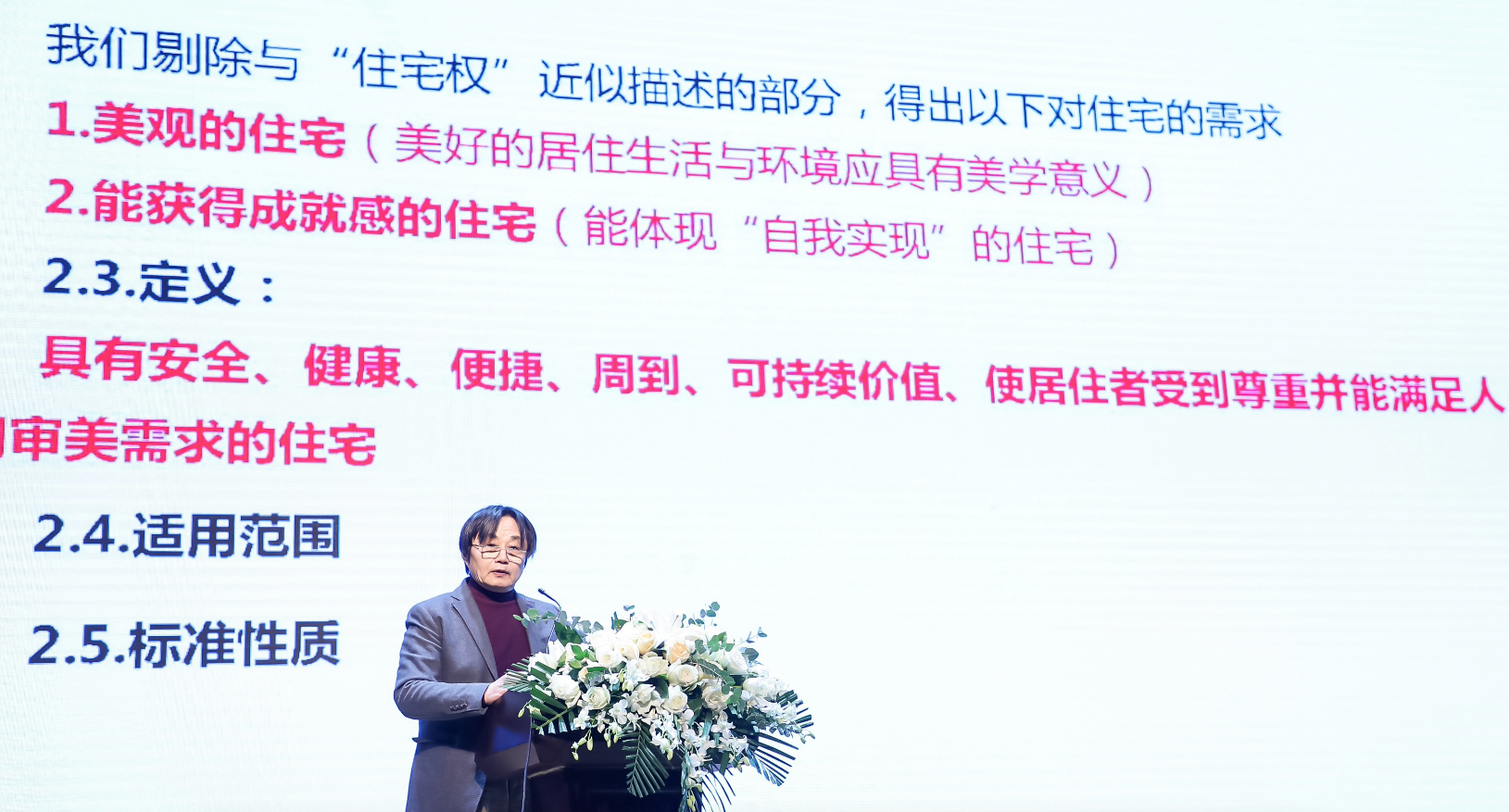 (二)技术。技术对于住宅的重要性毋庸置疑,但是如何从技术角度去诠释对居住者的保障和满足,这个是我们这次这个标准的一个切入点。对于人类居住权的界定,联合国曾经提出过系统的定义,我们基本是结合这个定义,通过对技术的厘清和技术标准的诠释来指向保障人的居住权。