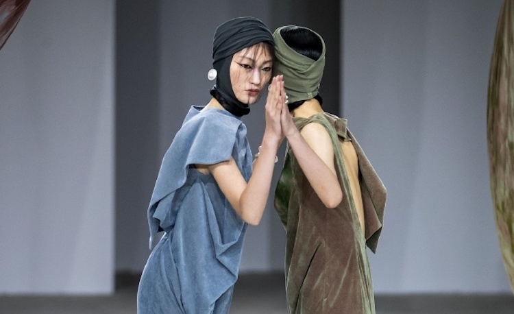 设计师尹经纬为Oude Waag创造出了一个神秘却迷人的系列。秀场上的女性形象充满了各种矛盾意象。头巾将头发包裹起来,让女性可以工作中免受一头长发的干扰,但几率从额头冒出来的发丝却增添了魅惑。