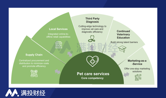 资料显示,新瑞鹏成立于2013年,在2018年与高瓴资本达成战略合作后,新瑞鹏迅速整合发展,现已成为中国最大、世界第二大的宠物医疗服务平台。据公司招股书介绍,公司业务主要包括宠物医疗服务、供应链服务和本地生活服务,除此之外公司还拓展了第三方诊断、兽医再培训、营销服务等业务板块。