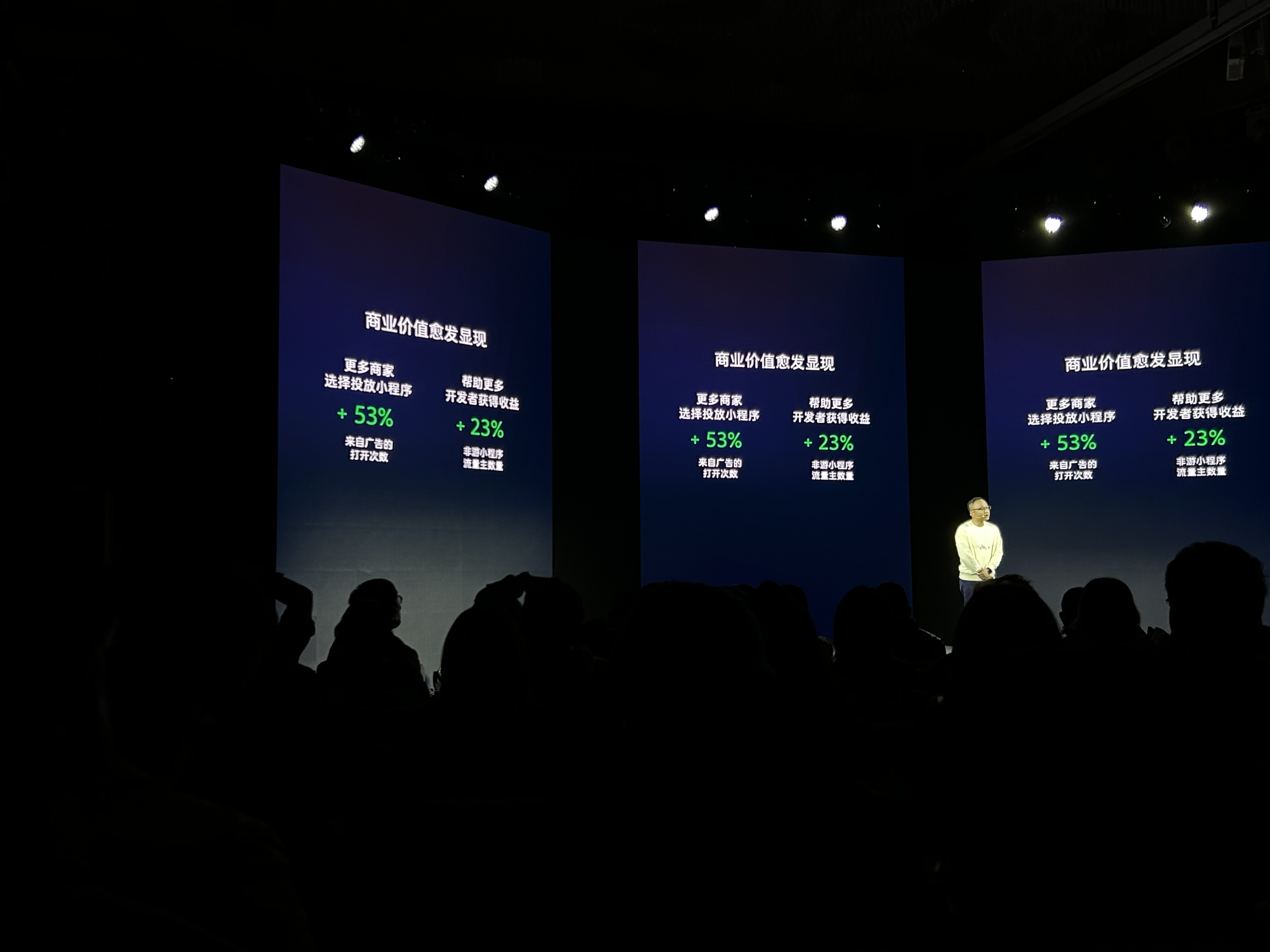 随着小程序数据的不断爬升,它也正在成为商家经营和投放广告的重要载体。去年小程序来自微信广告的打开次数增长了53%,非游戏小程序流量主的数量增长23%。