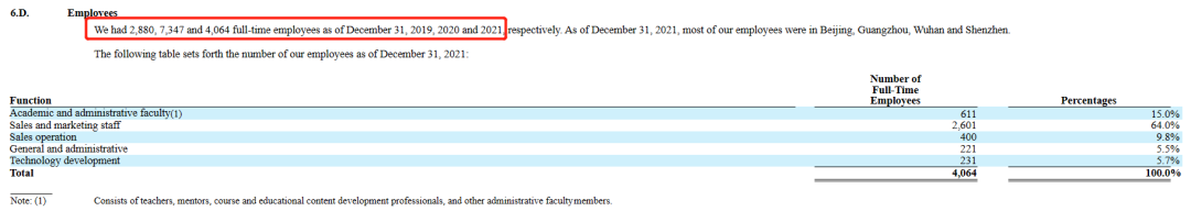 可以看到,尚德的盈利,很大程度上得益于人员的裁撤。2022年报中,尚德尚未披露员工数量,但在2021年报中,就能看出尚德裁员的力度。