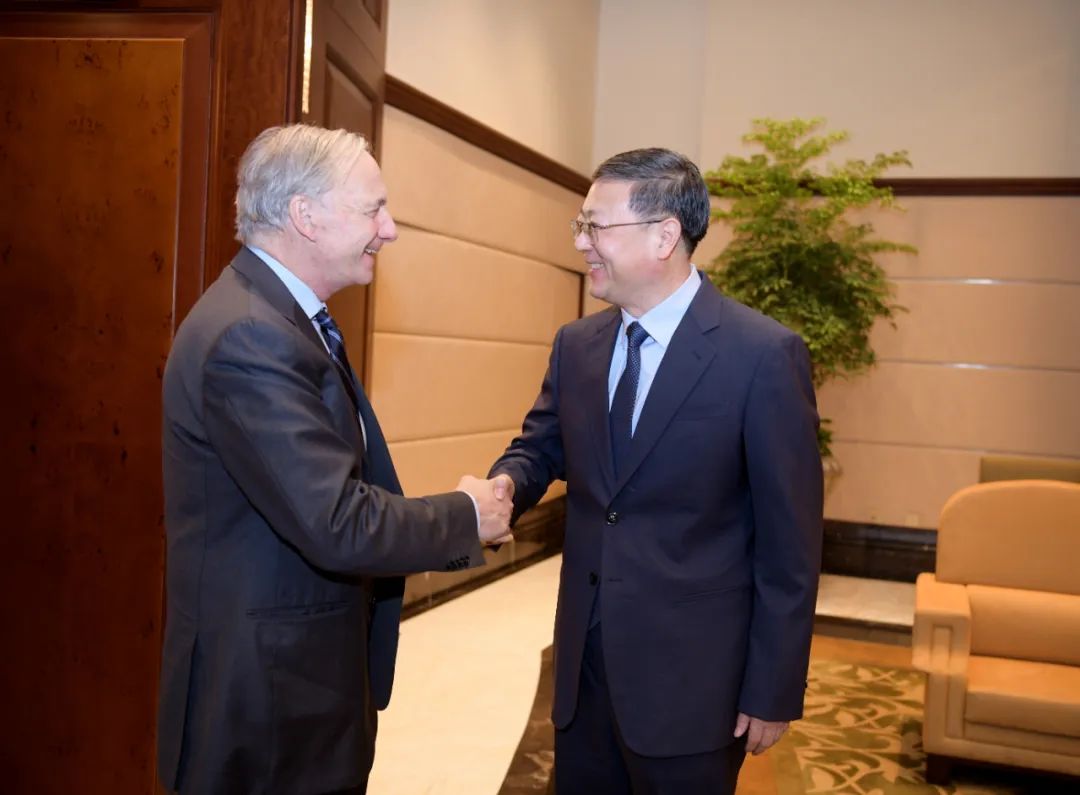 市委书记陈吉宁今天下午(3月28日)会见了美国桥水投资公司创始人瑞·达利欧一行。