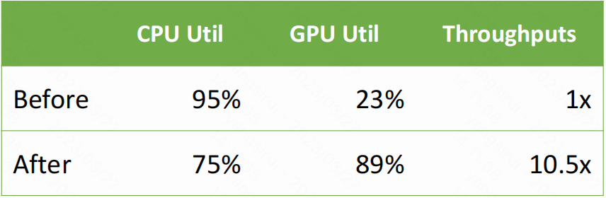 方案的实现关键是将部分负载转移到 GPU 上。梁潇称,为了做到这一点,首先要深度优化 CPU 算法,并且提升模型在 GPU 上推理的效率,“推理所需的时间越少,就意味着有更多的 GPU 算力可以用来承载从 CPU 上迁移的算法。此外,我们还尝试在 GPU 端缓存数据,从而减少对 DRAM 的访问量。”