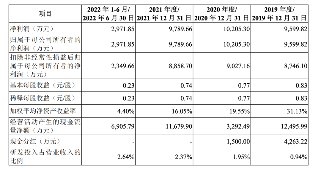 数据显示,2019-2021年及2022年上半年报告期内,幺麻子分别实现营业收入4.1亿元、3.56亿元、4.62亿元和1.84亿元,净利润分别为9599.82万元、1.02亿元、9789.66万元和2971.85万元。