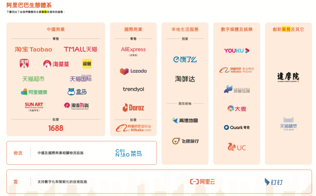 其中,中国商业包括中国零售商业业务如淘宝、天猫、淘特、淘菜菜、盒马、天猫超市、高鑫零售、天猫国际及阿里健康等,以及包括1688.com在内的批发业务。