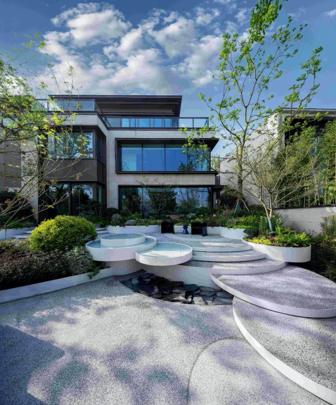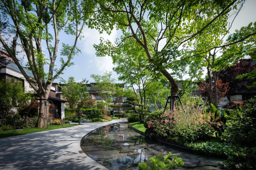 在嘉悦台,香港置地将合院别墅作了区别于传统联排别墅的升级,L形的布局将大平层的大尺度开间和联排的优势结合起来,并且回归到中国人的院子情结,保障每家每户,不仅有天有地有露台,更有院子。