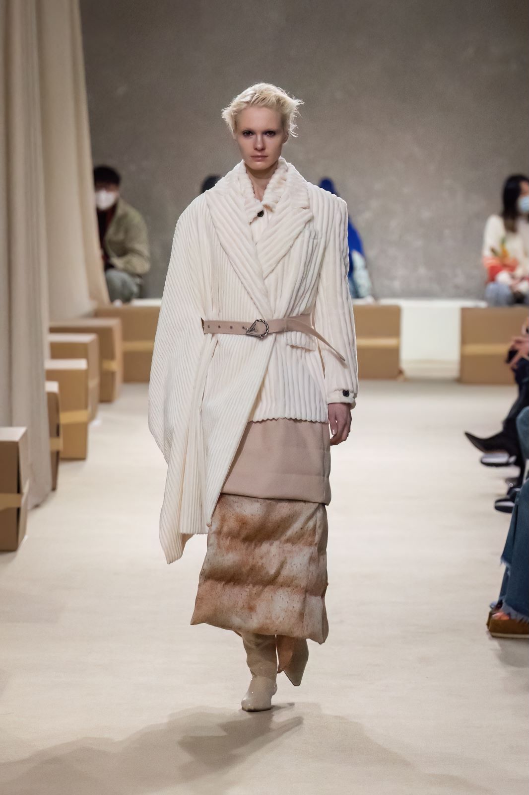 往事并不如烟。设计师品牌Linlin Chasse 2023秋冬系列以“Fleeing By Wind”为名,从1980年代一系列中国戏剧中汲取灵感。那些原应该被风吹走的记忆如今又重新被带回秀场。为了将“风”这个抽象的意象具体化,设计师用铆钉和印花来勾勒出风吹留下的痕迹。