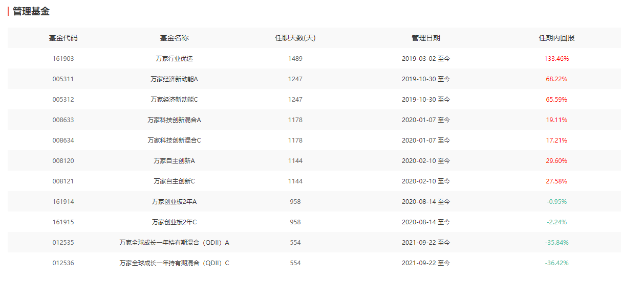 目前,黄兴亮主要管理万家优选、万家自主创新混合、万家经济新动能混合等6只产品(初始基金口径,下同),上述产品合计规模逾180亿元。