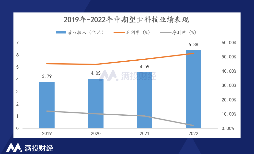 根据财报数据显示,2022年全年,望尘科技实现收入6.38亿元,同比增长38.7%。结合招股书数据来看,公司2022年上半年营收为2.95亿元,下半年营收3.43亿元,明显高于上半年。从近四年的营收表现来看,公司年均复合增速达到13.91%。