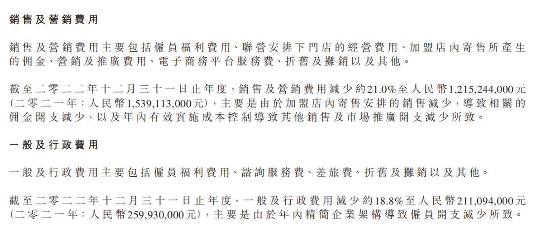 财报显示,都市丽人2022年销售及营销费用同比减少21.0%,一般及行政费用减少18.8%。这二者相加,通过缩减广告费和“裁员”,替都市丽人省了不少钱,算进了利润里面。