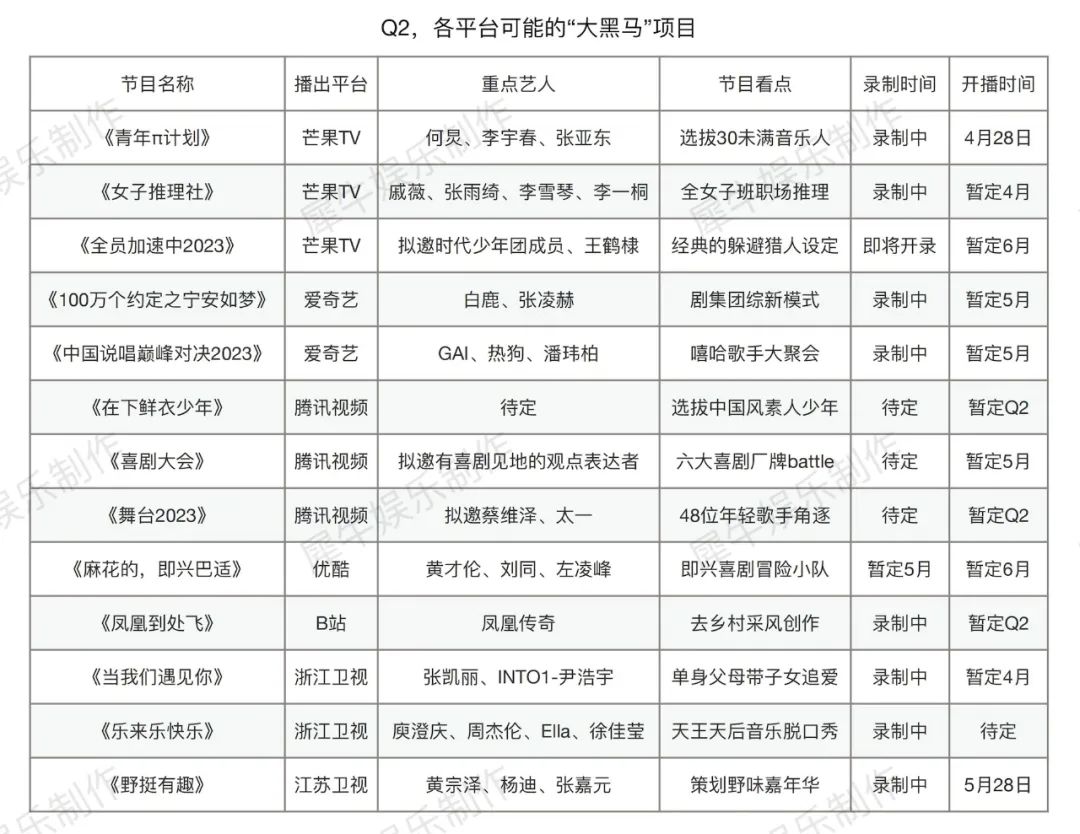 Q2的综艺市场要热起来了。