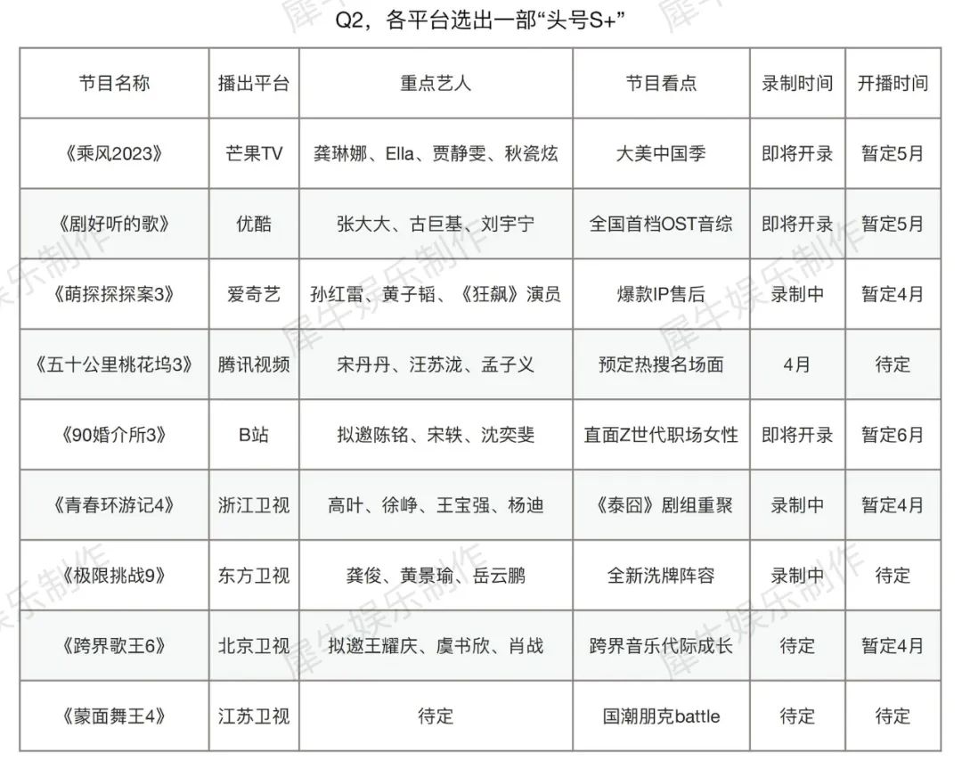 开年以来,业界之所以担忧综艺市场,无非因为Q1上新数量过少。但Q2就不一样了,历经几个月的精心筹备,各平台很重视的诸多S+项目都会在Q2登场。