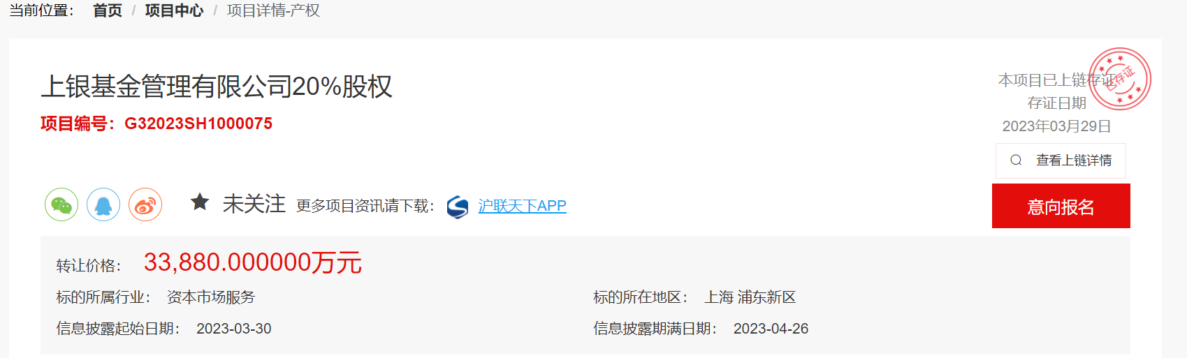 3月30日,据上海联合产权交易所网站披露,上海银行拟转让控股子公司上银基金20%股权,转让价格为3.388亿元。