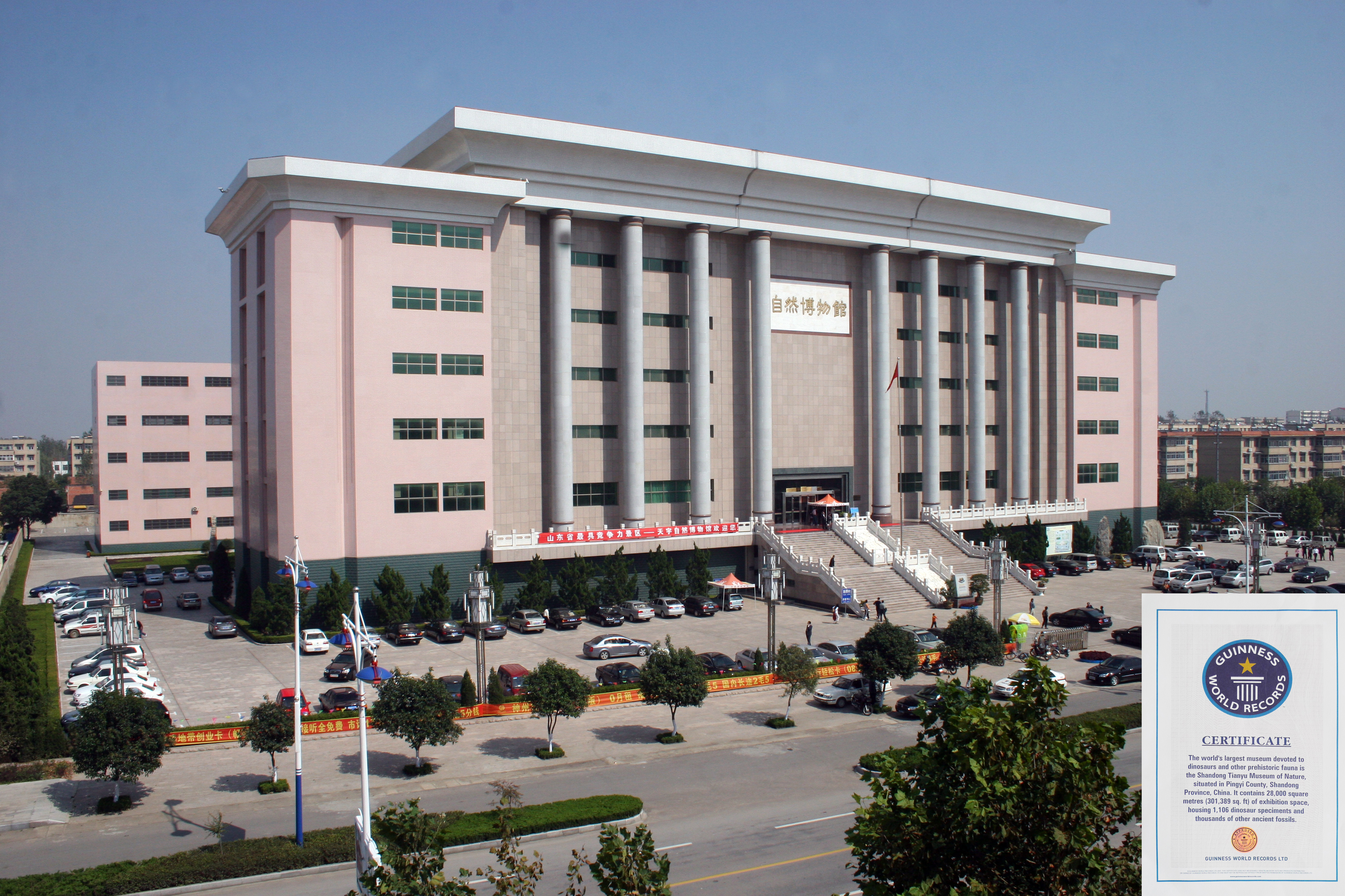 值得一提的是,载入吉尼斯世界纪录的“蒙山寿星”高218米、宽198米,是世界最大的山体雕刻;天宇自然博物馆藏品39万件,是世界最大的恐龙博物馆。