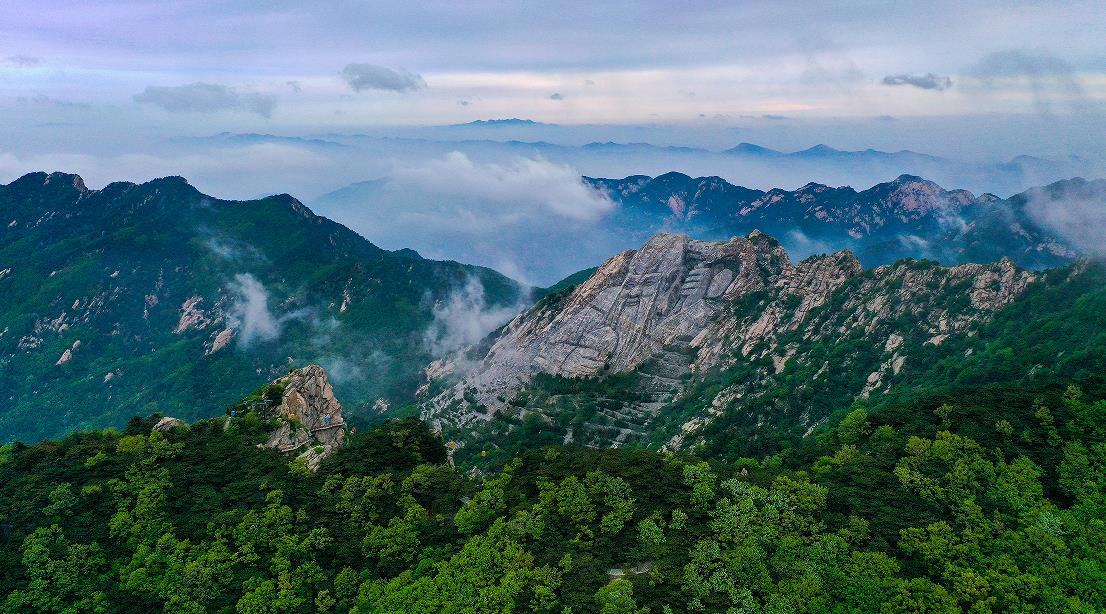 在平邑县,蒙山主峰龟蒙顶海拔1156米,为山东省第二高峰,是国家级森林公园、国家地质公园、国家4A级旅游区、全国县域旅游百强景区,东方著名的养生长寿胜地。