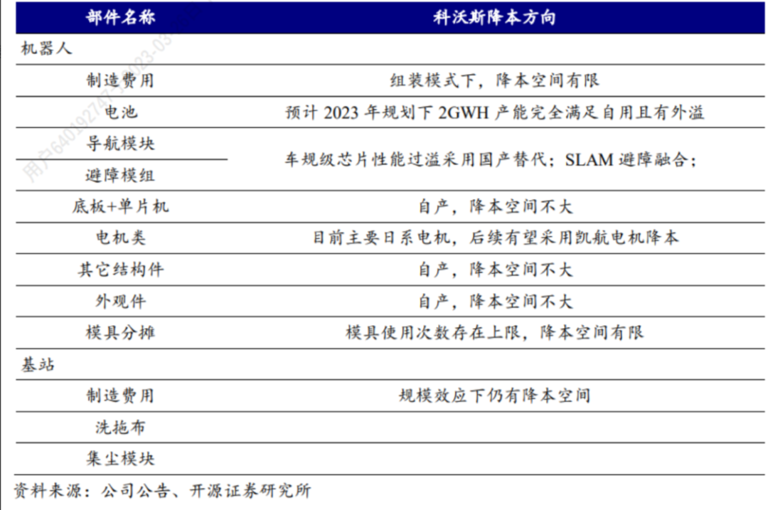 (科沃斯产品降本空间有限 图源:开源证券研究所)