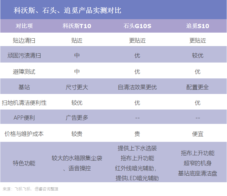 截止到目前,科沃斯除了扫地机器人,还布局了擦窗机器人、空气净化器,割草机器人等;追觅已有扫地机、洗地机、吸尘器、吹风机矩阵;石头有扫地机、洗地机、洗烘一体机矩阵;
