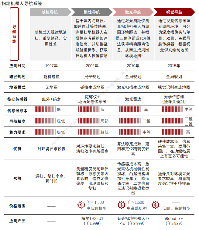 (扫地机器人导航系统迭代过程 图源:头豹研究院)