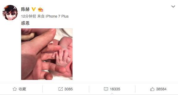 10月23日晚,演员陈赫在个人微博上传一张三人牵手照,并配文“感恩”。此前,陈赫与张子萱的“出轨门”事件在网络上闹得沸沸扬扬,两人与原配离婚后低调领证结婚,如今又爆出张子萱产子消息,令许多网友惊呼突然。
