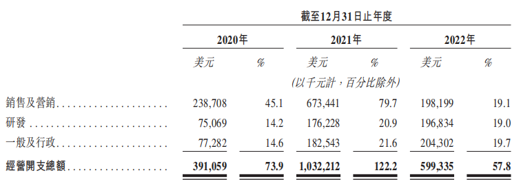营销开支主要由平台向商户提供的折扣及司机转介费、销售及营销雇员产生的员工成本和其他组成。第一部分从2021年的5.38亿元降至2022年的1.37亿元,员工成本从5937万元降到1968万元。