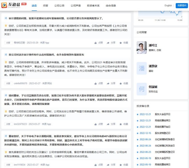在深圳证券交易所的“互动易”平台上,投资者就华帝电子及吴刚的相关事项对华帝股份董秘提出了一些问题。