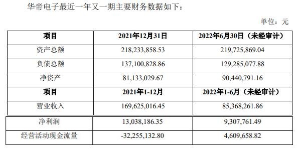 华帝电子于2021年度和2022年上半年实现的营业收入为1.70亿元和0.85亿元,净利润为1303.82万元和930.78万元;相比于华帝股份同期营业收入55.88亿元和28.03亿元、净利润2.15亿元和2.47亿元,华帝电子的盈利规模也要小得多。不过,从华帝股份公告中可以看到,华帝电子在2021年度和2022年上半年并未陷入亏损状态。