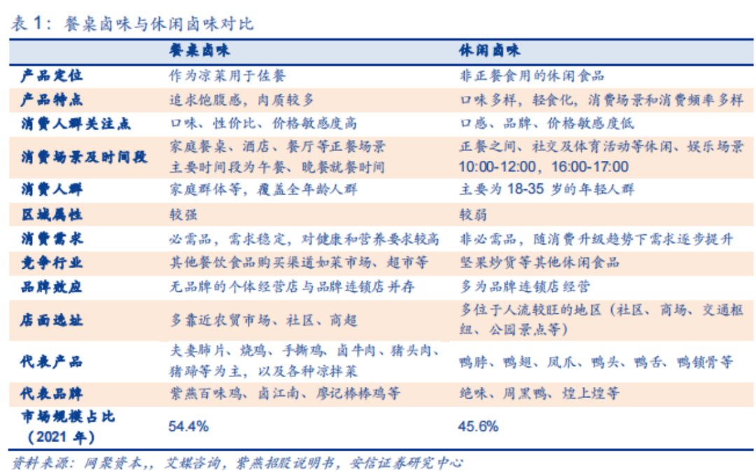 餐桌卤味和休闲卤味呈现的具体差异,主要还是体现在消费者端和生产供给端。