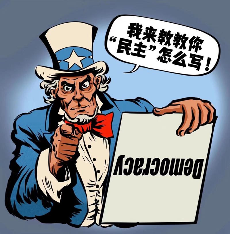 经过冷战时期两代人煞费苦心的经营,美国终于让民主与“美式民主”画上等号,将这面社会主义旗帜据为己有,福山的“历史终结论”成为“置换工程”登峰造极之作,民主威权二元对立叙事由此展开:凡是学习模仿美式民主的过程,就是“民主化”,坚持探索自己政治发展道路的,往往被列为违背“民主”潮流的“非民主”国家,民主自此成了美国自我制度标榜和干涉打压其他国家的意识形态利器。