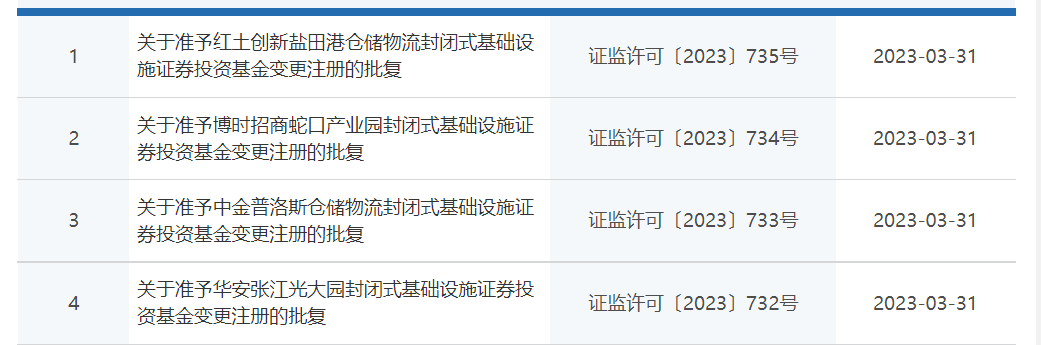 昨日,证监会批准了红土创新盐田港仓储物流REIT、博时招商蛇口产业园REIT、中金普洛斯仓储物流REIT、华安张江光大REIT四只封闭式基础设施基金变更注册的申请,这意味着这4只产品成为首批正式扩募的REITs。