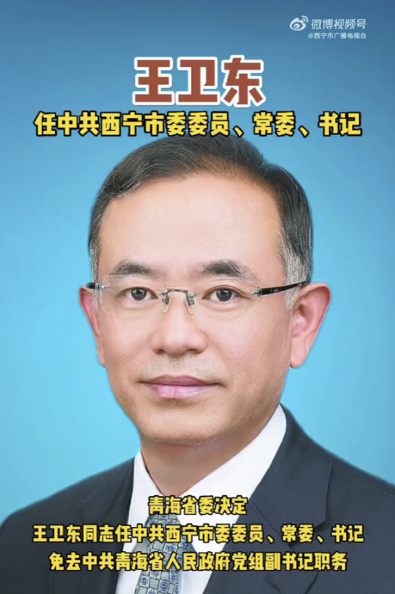 王卫东任中共西宁市委委员、常委、书记。(西宁市广播电视台)