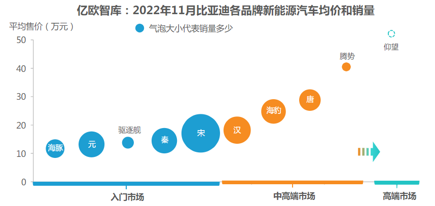 比亚迪在中端市场做得风生水起的同时,也逐渐把目标转向高端市场。唐、汉和海豹是品牌升级的信号,腾势汽车是比亚迪向高端豪车转化的过渡品牌。今年1月,比亚迪发布的仰望品牌宣布正式进军百万级高端市场。